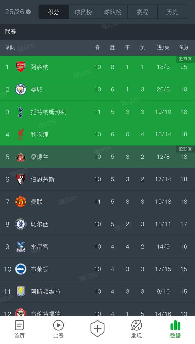 英超第11轮的比赛正在进行中,曼联在客场2-2战平热刺,双方握手言和各拿一分,本场比赛过后,目前在英超积分榜有五支球队都积18分。曼联在客场2-2战平热刺,目前热刺凭借净胜球的优势排在积分榜第二,利物浦、桑德兰、伯恩茅斯少赛一场同积18分,曼联则排在第七名。本轮英超,利物浦将在客场挑战曼城,桑德兰则将在主场对阵榜首阿森纳,伯恩茅斯将对阵排在第11名的阿斯顿维拉。【上咪咕独家看英超】