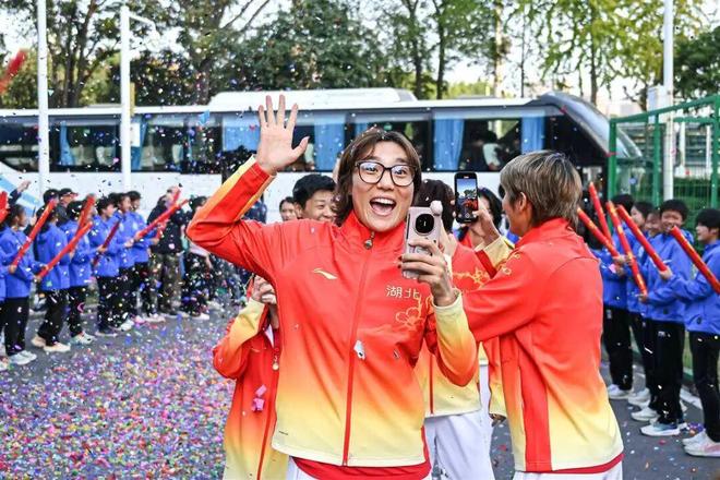 礼花喷薄而出,掌声如雷响起。当姚伟、吴海燕、陈晨等球员走下大巴时,瞬间被小球迷们团团围住。签名、合影,姑娘们耐心地满足着每一个要求。吴海燕在合影间隙,摸了摸小球员的头,满是期许地说道:“未来就靠你们啦!”